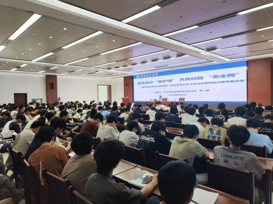 6月6日,碳中和科学与工程学院在念艰楼三楼报告厅举办一站式学生社区之防范电信网络诈骗专题讲座,邀请长丰县公安局刑侦大队主任邓一敏担任主讲,院团委副书记邓礼瑞主持,学院全体学生参与。