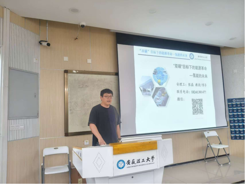 张磊老师指出,氢能作为清洁能源的重要发展方向,已成为全球能源转型的关键领域,国家“双碳”战略的实施为氢能产业带来了前所未有的机遇。他系统介绍了氢能制备、储存、运输及利用的关键技术,并结合国内外最新研究成果,深入分析了氢能在交通、工业、电力等领域的应用前景。报告内容丰富、深入浅出,既有理论高度,又贴近学生实际,赢得了在场师生的阵阵掌声。