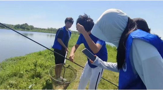 这个夏天,一队身着蓝色队服的青年学子活跃在合肥的河畔塘边。7月1日至7月6日,安徽理工大学碳中和科学与工程学院智慧渔业助力队的9名师生,带着专业设备走遍长丰县板桥河、肥东县梁园镇及梁园水库等地,开展为期五天的水环境专项调研活动,用科技之笔描绘出一幅生动的“水生态画卷”。
