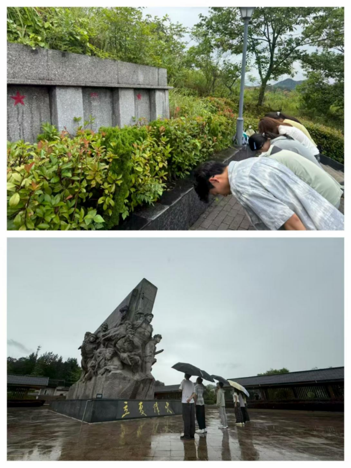 午后踏入南溪,立夏节起义旧址见证革命火种燃起,当年的呐喊似穿透时空,诉说着敢为人先的勇气;红二十八军重建会议旧址,铭刻三年游击战的坚韧,让队员们读懂“绝不放弃”的执着。南溪红军烈士陵园松涛阵阵,队员们俯身鞠躬,在苍松翠柏间,与先烈“对话”。那些为理想献身的故事,不再是书本里的铅字,而是化作心底滚烫的信念——传承红色基因,以青春续写担当,成为队员们共同的使命。