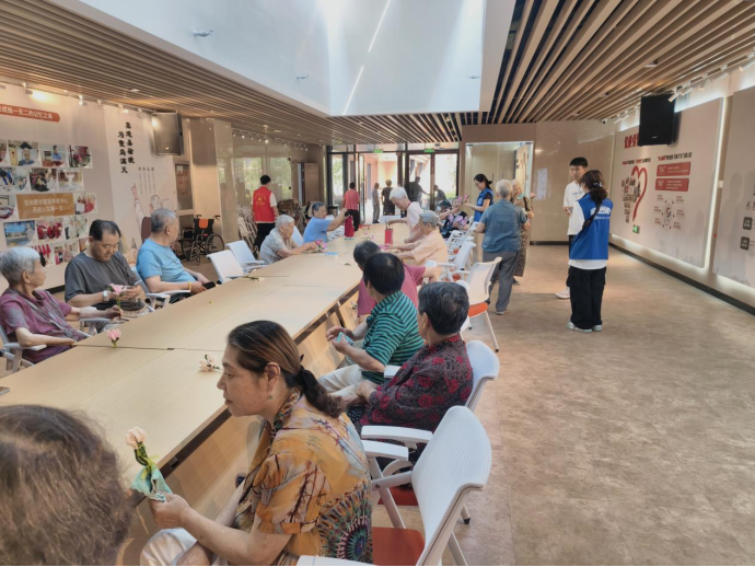 7月6日与7月10日,团队成员分批前往合肥市智慧养老中心进行手工活动的简易教学。通过讲解教授扭扭棒郁金香和漆扇的制作,为长者带去欢乐与陪伴。志愿者们耐心细致地向老人们讲解扭扭棒郁金香的制作步骤,从花瓣塑形到枝叶组装,一步步进行示范指导。老人们兴致盎然,在志愿者的协助下,很快掌握了制作技巧,一朵朵色彩鲜艳的郁金香在指尖绽放。漆扇制作环节更是热闹非凡,老人们自主发挥创意,调配颜料、绘制图案,制作出了一面面风格独具的漆扇。志愿者们从旁辅助,帮助行动不便的老人染扇面,为老人们设计扇面图案。现场欢声笑语不断,温馨融洽。“看着爷爷奶奶们专注制作的样子,我们也不由得被他们的热情感染了。”团队成员吴同学感慨道。活动不仅让老人们体验到手工艺的乐趣,也增强了他们的成就感和幸福感。安徽城市管理学院在智慧养老中心工作的实习生汪同学表示:“这样的互动活动既锻炼了老人的动手能力,也促进了代际交流,非常有意义。”