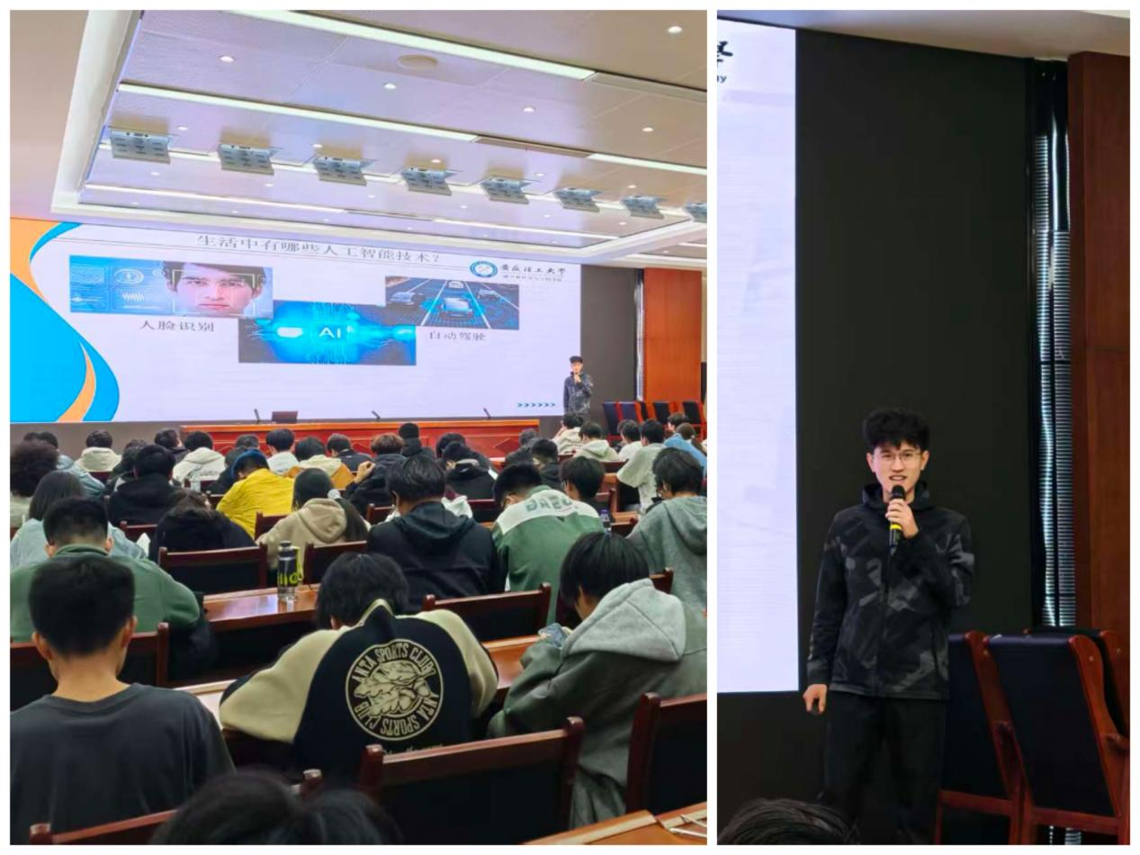随后杨少博老师带领同学们进行了一场酣畅淋漓的思维探索,他以“现代人工智能技术与应用”为题,通过例举深蓝计算机战胜国际象棋冠军、Hinton团队利用深度卷积神经网络降低ImageNet竞赛错误率等实例来阐述人工智能发展的要素和概念,展现了人工智能巨大潜力。
