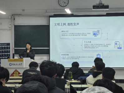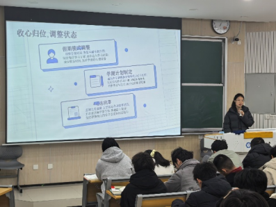 在集中班会环节,辅导员以“欢迎回家,开启新征程”为主题,对新学期的重点工作进行全面部署。她首先肯定同学们上学期在学习和各项活动中的积极表现,并勉励大家尽快收心归位、调整状态,以崭新姿态迎接新挑战。随后,她从学风建设、纪律管理、网络文明、安全教育、身心健康、职业规划等多个维度展开细致讲解与引导,帮助同学们树立正确目标,增强自我管理意识。