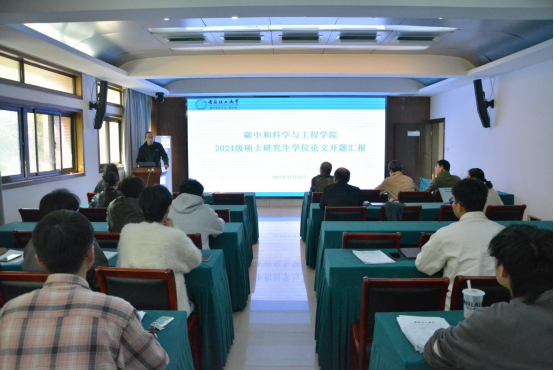 11月14日,碳中和科学与工程学院研究生导师所带的首届2024 级硕士研究生学位论文开题汇报在明德楼顺利举行。9位硕士研究生依次进行开题汇报,会议由副院长杨科主持。