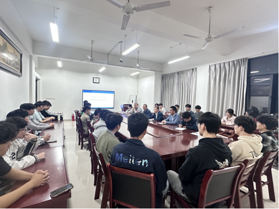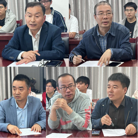 会上,武成利对全体新生表示了热烈欢迎,介绍了学院导师队伍建设与科研资源情况,勉励同学们主动对接导师资源,在科研学术道路上积极探索,同时必须坚守学术道德底线,筑牢科研诚信根基;王会社介绍学院概况,鼓励同学们尽快转变角色,适应研究生阶段的科研与学习节奏,明确目标、科学规划,充分利用学院的各类资源和平台,不断提升创新能力和综合素养;王鹏指出,研究生成长需兼顾学术能力与个人品德,鼓励同学们以优秀导师为榜样,在追求学术突破的同时涵养高尚品格,做到立德为先,修业为本,实现个人与学术的双重成长;杨科详细解读了学院研究生的培养机制,针对研究生科研能力培养展开分享,鼓励大家以研究为核心,锤炼科研本领,积极参与导师课题研究、行业实习实践;古晓锋结合学院学科交叉特色给出具体指导,提醒学生需对照导师研究的方向需求,主动补修相关专业课程,构建系统的知识体系,提前弥补知识空缺才能更好参与到科研项目中来。