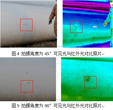 实验结果表明,采用拍摄距离和不同拍摄角度进行拍摄和对比,可以发现拍摄角度和距离对红外特征成像效果影响非常大,选取适当的距离和角度拍摄,可以获得清楚地红外缺陷特征,方便进行缺陷识别。