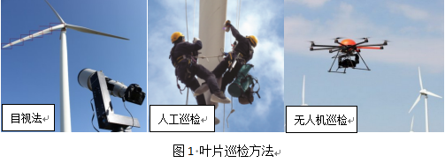风力机叶片是主要由梁、腹板、蒙皮组成的复合材料梁壳结构,成型工艺复杂,技术含量较高。风力机工作后,在运行过程中会面临各种恶劣环境的考验,加上长期使用过程中受到的交变载荷的作用,容易出现断裂、褶皱、砂眼、分层、蒙皮鼓包、雷击损伤等。如果不定期对风力机进行巡检,轻则会因为叶片损伤降低风力机发电效率,重则导致叶片折断,甚至风力机倒塌,造成重大损失。目前常用的叶片巡检方式(如图1所示)主要有目视法、人工巡检、无人机可见光巡检。