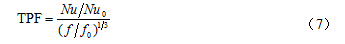 本文采用综合流动传热性能TPF(Thermal Performance Factor)来评价交错肋的冷却性能。综合流动传热性能的计算式为: