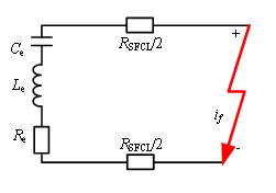 研究者对柔性直流系统换流器出口发生两极短路故障的情况进行理论求算,以研究超导直流限流器在柔性直流系统故障暂态过程中的影响。相应等效故障回路如图1所示: