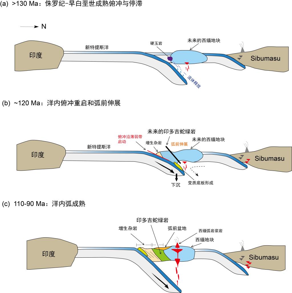此项研究的科学意义包括:(1)在地质上证实了新特提斯洋的双俯冲系统延伸至缅甸,这与近年来的古地磁资料和地球物理观测结果一致,对新特提斯洋内俯冲带的分布和演化历史的研究取得了实质性的进展;(2)揭示了新特提斯洋内俯冲系统可能在侏罗纪就已启动,之后发生了一次俯冲停滞事件并于早白垩世(约120 Ma)重新启动。