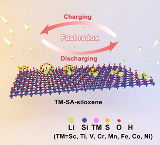 此外,锂硫电池的高理论容量早已引起科学家们的广泛关注,但锂硫电池中多硫化物的“飞梭效应”是影响其工作效率的主要原因,解决该问题目前存在两个方法,一是加强正极材料对多硫化物的吸附,二是催化多硫化物的转化。研究者构建了一系列负载过渡金属单原子的硅氧烯材料(W-TM-SA-siloxene),探究了其作为锂硫电池正极载硫材料的性能及反应机理。硅氧烯材料的羟基和氧原子能有效吸附多硫化物,金属单原子掺杂后形成的单原子催化剂又能有效催化多硫化物的转化。研究发现,W-Co-SA-siloxene具有良好的导电性以及合适的多硫化物吸附能,对硫还原和Li2S分解反应表现出双功能催化效果。W-Co-SA-siloxene中合适的d和p轨道中心位置,Co-3d与S-3p轨道的杂化,以及能从多硫化物中获得的相对较多的电子,是其作为锂硫电池正极载硫材料时能提供高氧化还原动力的关键。