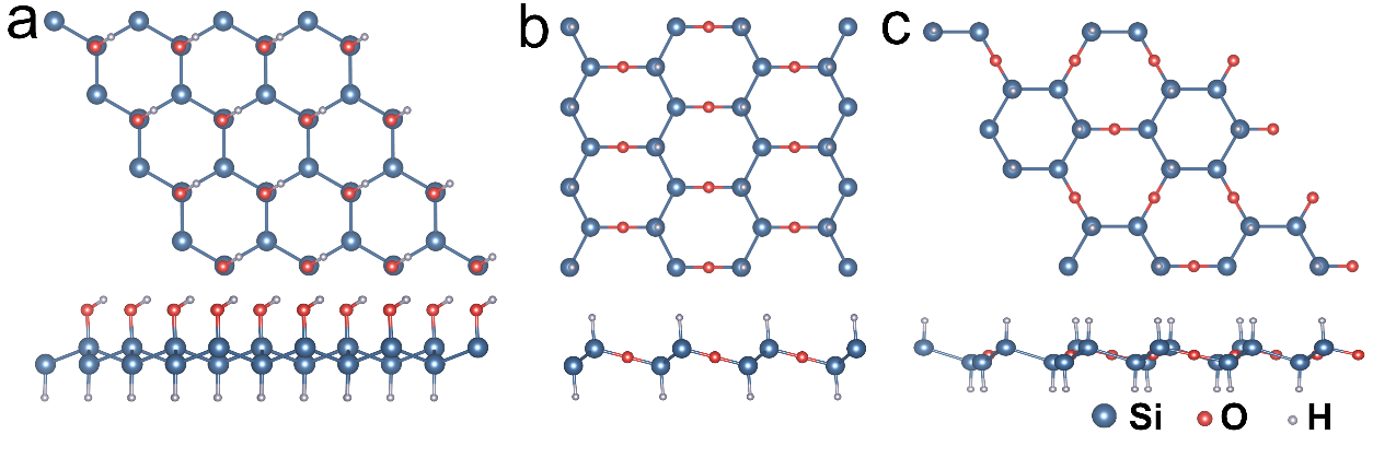 图2 硅氧烯的三种结构模型:(a)Weiss;(b)Chain-like;(c)Kautsky。