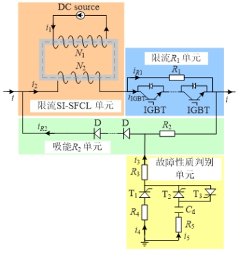 (1)限流SI-SFCL单元和限流R1单元在故障发生初期起到阻感混合限流的作用,降低直流故障电流水平;吸能R2单元在故障隔离阶段可分担一部分故障能量,缩短断路器清除故障电流时间;限流SI-SFCL单元呈现出的感性限流效果,是确保吸能R2单元形成负电压从而接通故障性质判别单元的关键。