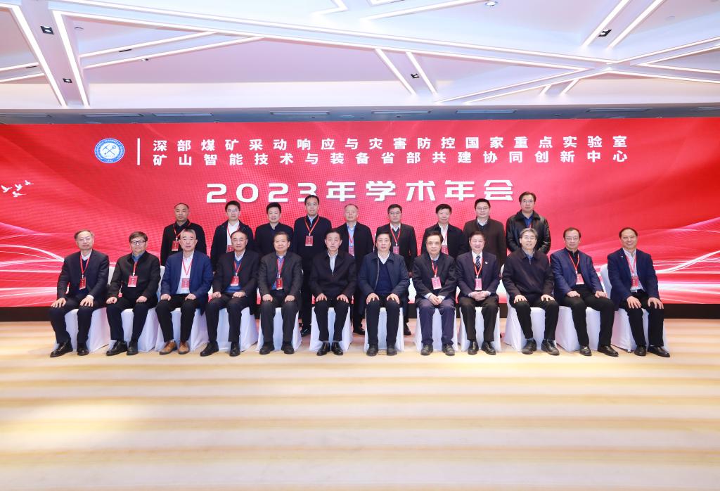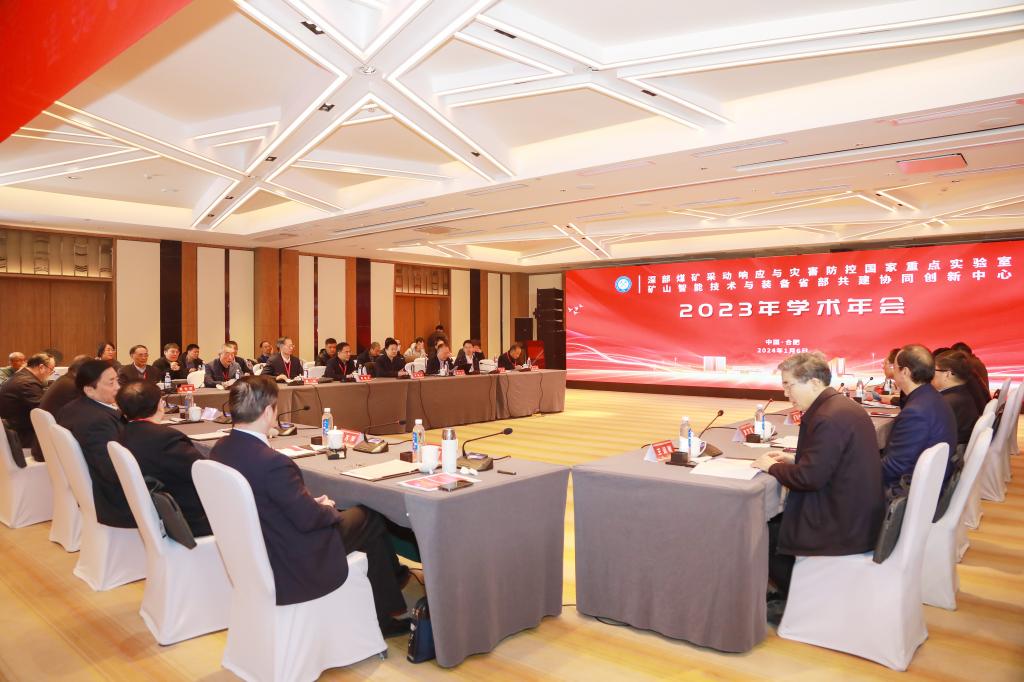 1月6日上午,深部煤矿采动响应与灾害防控国家重点实验室暨矿山智能技术与装备省部共建协同创新中心2023年学术年会在合肥隆重举行。安徽省人大常委会原副主任谢广祥,科技部高技术研究发展中心国家重点实验室管理处处长闫金定,安徽省科技厅党组成员、副厅长姚群,中国工程院院士谢和平、彭苏萍、袁亮、陈湘生、王国法(线上)、王运敏、葛世荣、焦宗夏、吴爱祥、赵跃民、潘一山、杜时贵,国家重点实验室、协同创新中心主任郭永存教授,中国安全生产科学研究院院长周福宝教授,徐州工程学院院长张农教授,中国矿业大学朱真才教授,太原理工大学寇子明教授,安徽理工大学特聘教授、上海申传电气创始人郑昌陆,安徽理工大学特聘教授、南京派光智慧创始人石峥映,校党委副书记、常务副校长余玉刚,校党委常委、副校长张平松等出席会议。