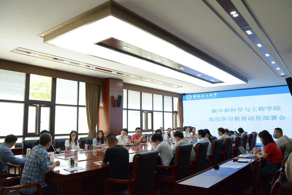 按照学校党委党纪学习教育统一部署安排,2024年5月16日下午,碳中和科学与工程学院党委在产教融合楼一楼报告厅召开党纪学习教育动员部署会议,会议由党委副书记、院长王会社主持。