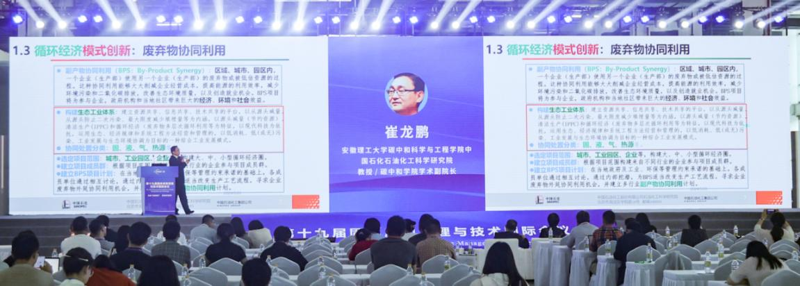 崔龙鹏教授受邀在全体大会就“‘无废城市’建设与示范”议题,作了“工业固废绿色低碳循环利用模式创新及产业共生实践案例”的大会主题报告。基于长期企业全生命周期生产过程综合污染防控(Integrated Pollution Prevention and Control,IPPC)、工业副产物协同利用(By-product Synergy,BPS)的理论探索、技术攻关和应用实践,进一步拓展“无废城市”理念,提出“固废、废水、废气、废热等工业副产物的绿色低碳循环协同增效“一体化”创新模式,推介了基于企业(集团)、园区(基地)、城市和区域不同层面的“工业共生模式及实践”,包括中国能源金三角的宁东能源化工基地(宁夏能化)“无废煤电化基地”、中国七大石化产业基地之一的浙江宁波(镇海)“无废石化基地”、华东地区最大的能源基地(安徽淮南)的全国首批安徽省唯一的减污降碳协同创新试点城市等案例的研究进展。积极构建市场导向的绿色技术创新体系和绿色生产体系,为国家实施“双碳”战略和“无废城市”建设提供示范案例。