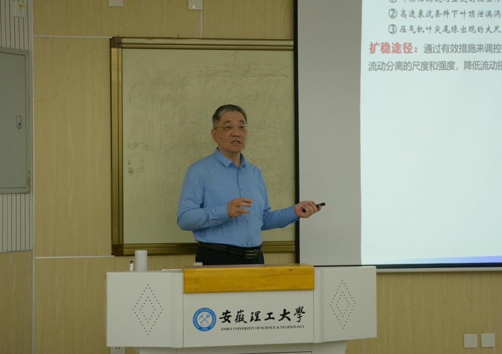 2024年5月30日下午,应安徽理工大学科研部和碳中和科学与工程学院邀请,上海海事大学商船学院钟兢军教授来校作了题为《高负荷压气机中叶尖小翼与转速自适应机匣扩稳技术研究》的学术报告。碳中和科学与工程学院40余人聆听了报告。