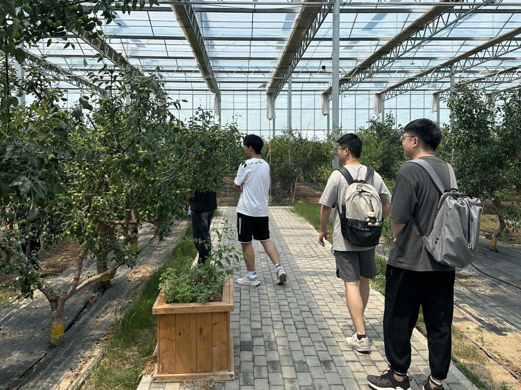 下午,调研团队来到了沾化冬枣研究所,了解下洼镇的冬枣发展规划:借助新兴互联网平台构建冬枣新型消费渠道,依托科技力量实现冬枣产业的飞速提升,将自然资源、文化资源、科技发展、社会发展有效结合,打造农村特色产业发展形态,满足乡村振兴战略目标实现需求,促进农村经济高质量发展。在张书记的讲解下,团队成员了解到,自2021年以来,新建设冬暖棚、棉被延熟棚、钢架春棚、普通防雨棚、智能阳光温室5种冬枣大棚共同种植冬枣,实施最新种植栽培技术,可使冬枣采摘期持续多达5个月。这不仅增加了农户的经济收入,也为当地的相关就业提供了新的机遇。张书记也对队员们表达了殷切的期盼和嘱托,希望我们当代年轻人不断创新,实现自身价值,知农爱农,“将专业论文写在祖国大地上”。
