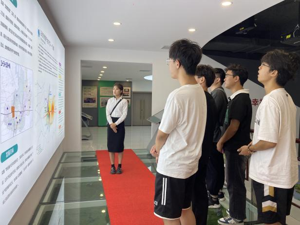 之后,团队参观了冬枣数字经济产业园,经过讲解员宋光惠的介绍,团队对冬枣产业发展历程有了更为深入的体会。团队成员了解到,对于设施大棚的建设,许多村民一开始安于现状,较为抵触。镇财政积极争取项目资金,为村民提供补贴,挨家挨户进行思想工作,引导种植。当地贫困村民从“揣着手”等,到“背着手”看,最后变为“甩开手”干。经历了规范管理、科学种植、品牌经营、产业规模化,冬枣产业面积逐步发展扩大。“千里来寻故地,旧貌变新颜”,现如今,下洼镇致力于将冬枣产业作为富民强镇的主导产业。