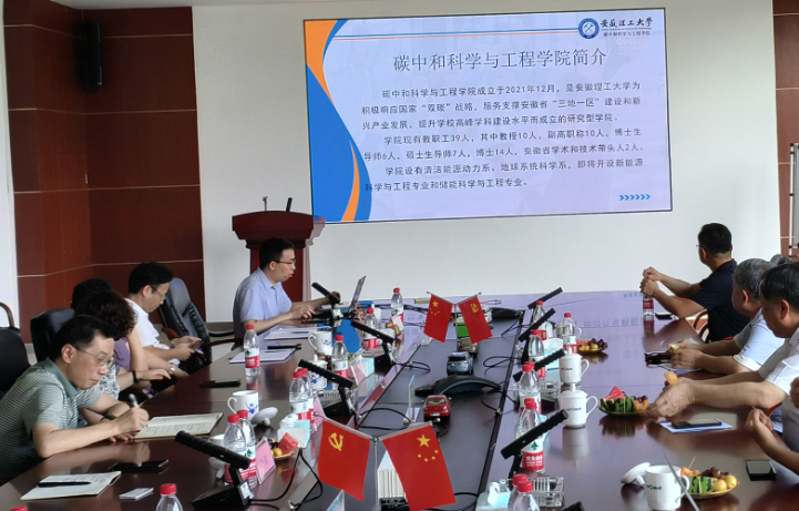 会上,高登榜从校史沿革、学科建设、师资力量等方面介绍了学校、学院近年来的发展情况,他指出,学校、学院与地方企事业单位的切实合作,是推动新技术产业化、互惠共赢的重要方式。何刚对学院的快速发展表示赞许,他强调,池州有着很好的循环经济历史和基础,城市产业结构体量大,减碳降碳空间大,期待将来在无废城市建设、零碳园区设计、碳足迹技术等方面与碳中和学院积极开展合作攻关。杨科介绍了学院的基本情况,并表示,学院正积极利用自身优势,在能源转换、降碳技术、无废园区规划、二氧化碳捕集等方向悉心布局,希望最终建立起产学研持续稳定结合的长效机制。
