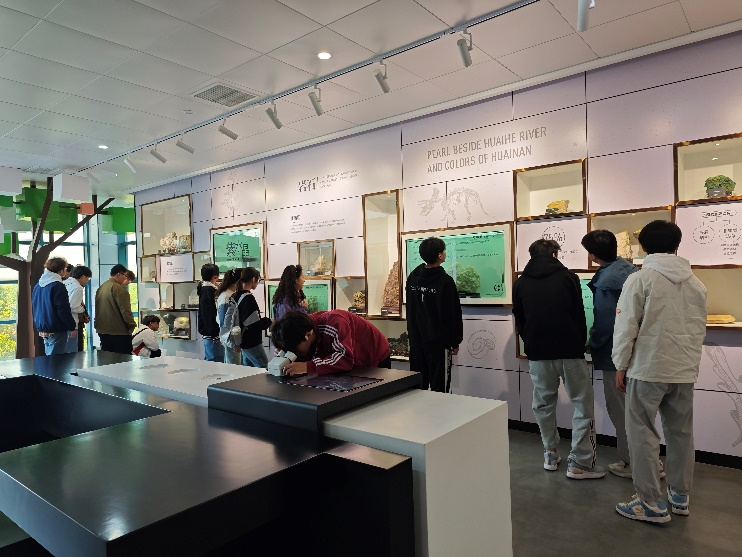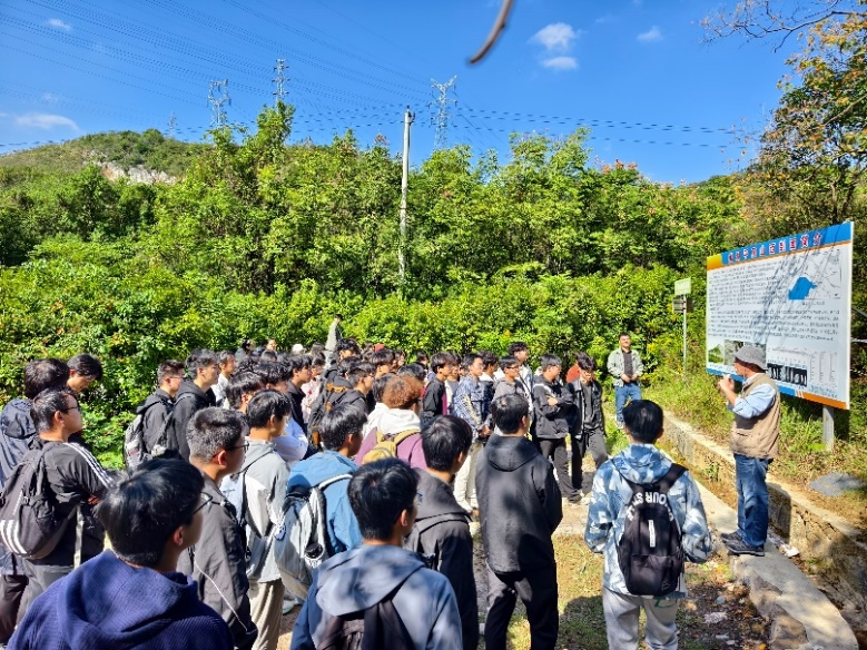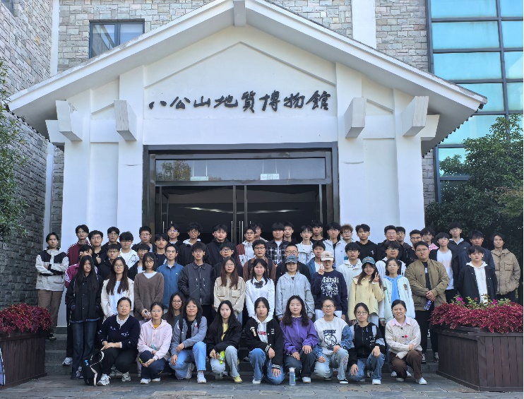 11月2日,新能源专业23级本科生又赴淮南市八公山国家地质公园继续开展地质实习。八公山国家地质公园以形成于距今约5.4至5.1亿年前的寒武系下、中统剖面及所产的丰富的古生物化石为特色,发现有古生代寒武纪的须宛类、环节类、三叶虫等古生物化石。同学们先后认识了公园内出露的典型地层、地貌特征,参观了八公山地质博物馆,通过对馆内艺术展板和化石标本的学习,加深了对《能源地质学》课本中理论知识例如地层、岩石、煤炭等概念的理解。其中,地质公园内的八公山“石林”给同学们留下最为深刻的印象。它由属于寒武纪下统地层的厚层状白云质灰岩、白云质角砾岩组成,出露高度约1.5~5米。由于曾经受到两组高角度节理(劈理)的影响,加之长时间受到风雨剥蚀、搬运,以及植物生长的综合影响,形成了江北地区罕见的石林石芽地貌,为研究古地质、古气候、古生物等提供了重要的线索和资料。