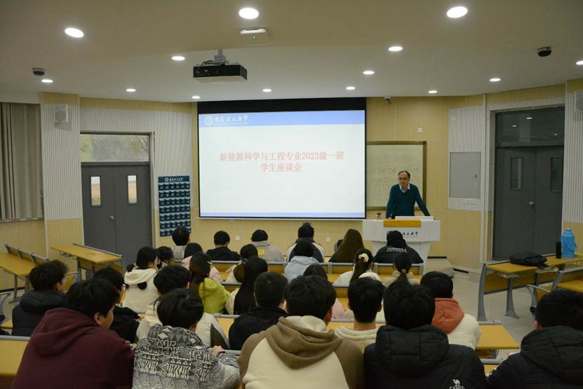 2024年12月11日,碳中和科学与工程学院在启智楼104教室举办了一场新能源科学与工程专业2023级1班学生座谈会。此次座谈会是学院认真落实“一站式”社区班级导师工作的重要举措,旨在深入了解23级学生在合肥校区的适应情况,关注学生安全问题,并广泛听取学生的意见和建议,以进一步提升学院的教学与管理水平。会议由学院党委书记徐良骥主持,学院党委副书记王鹏、班主任及辅导员也参加了此次座谈会。