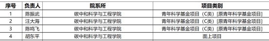 本次获资助的项目紧密结合国家重大战略需求,凸显了学院在碳中和领域的科研特色和优势。此次评审结果中学院青年教师表现突出,充分说明学院优秀青年科研人才已逐步成为承担基础研究任务的主力军。本次评审结果也是学院高层次人才队伍建设成效的集中体现。