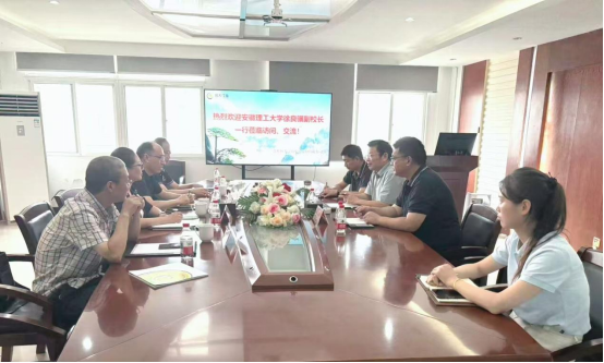 参观结束后,双方举行座谈交流。朱庆龙首先介绍了公司发展现状、未来规划及在人才引育、技术研发等方面的核心需求,表达了深化产学研协同、共建实习实训基地等合作意向;徐良骥对企业取得的行业成就表示祝贺,系统介绍了学校学科建设、科研平台及成果转化等方面进展,强调愿以此次访问为契机,充分发挥校企资源优势,搭建常态化合作平台,共同为行业高质量发展赋能。刘艳、王会社、钱德猛也结合各自领域与企业负责人展开深度探讨。