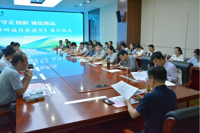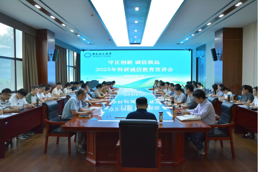 9月17日上午,为进一步强化科研诚信建设,营造风清气正的学术环境,碳中和科学与工程学院在产教融合楼一楼报告厅举行2025年科研诚信教育宣讲会暨承诺书签订仪式,院党委书记武成利,副院长杨科、古晓锋,全院教师参加。会议由杨科主持。