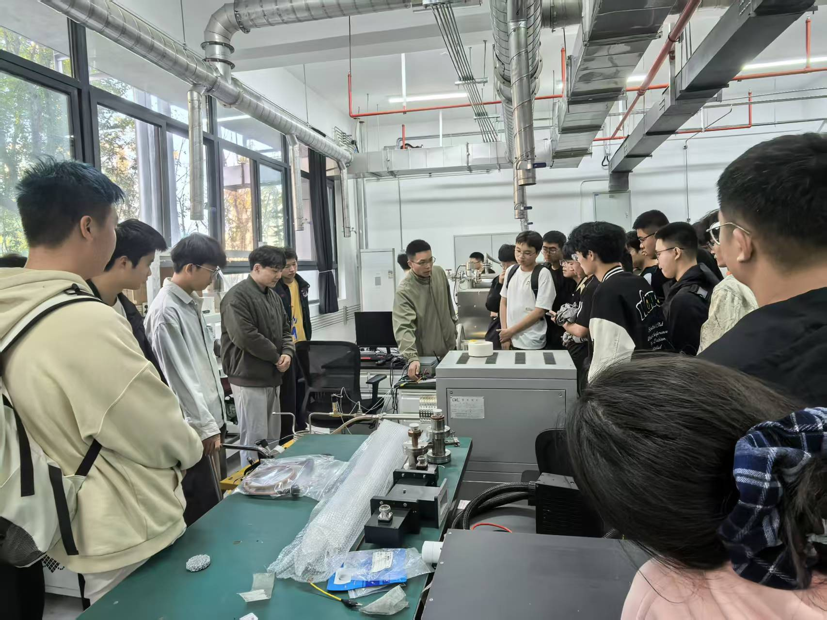 接着到达第二个园区——合肥综合性国家科学中心能源研究院,在吴俊老师精心组织下,工作人员和解说员带领同学们进入能源相关的实验室,边讲解边演示,让同学们更加直观了解实验室装置的用途与用法。