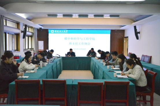 2025年12月18日,碳中和科学与工程学院在明德楼第二会议室召开12月班主任工作例会。院党委书记武成利、党委副书记王鹏、地球系统科学系主任戚玉菡及全体班主任、辅导员参会,会议由王鹏主持。