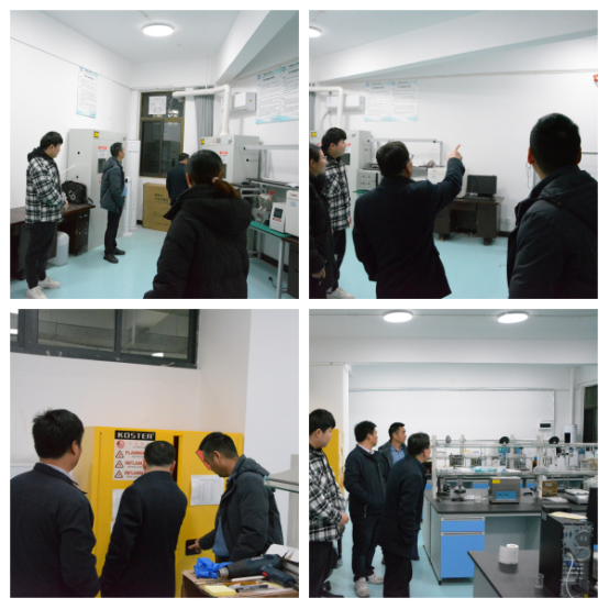 实验室消防风险较高,领导们围绕设备安全运行、危化品管理等核心环节检查,核查设备维护记录与危化品采购、储存、领用全流程规范度,强调严守管理规定,严防火灾、爆炸事故。要求实验人员规范操作,强化应急处置能力,保障实验安全有序。