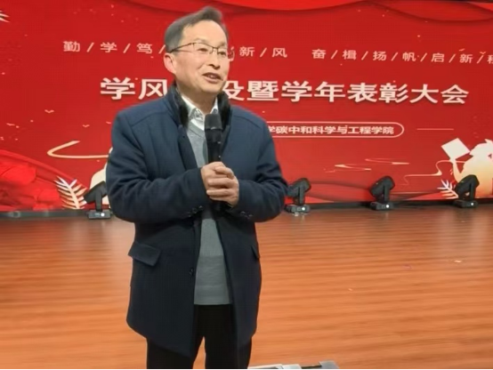 3月24日晚,碳中和科学与工程学院在学生活动中心举行2025年学风建设暨表彰活动。学院党委书记武成利、党委副书记王鹏、副院长古晓锋,各系主任、辅导员及全体学生共同参加,见证先进典型的荣誉时刻。