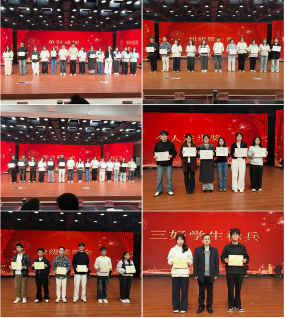 活动伊始,参会领导分别为单科第一、个人进步奖、学风优秀寝室、班级第一、专业前三、三好学生及标兵、优秀学生干部等先进个人颁发奖状。获奖同学依次上台,台下掌声不断,展现出对榜样的敬意与对自身进步的期许。